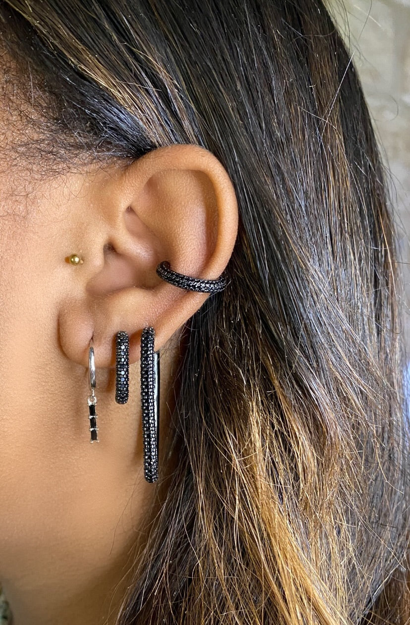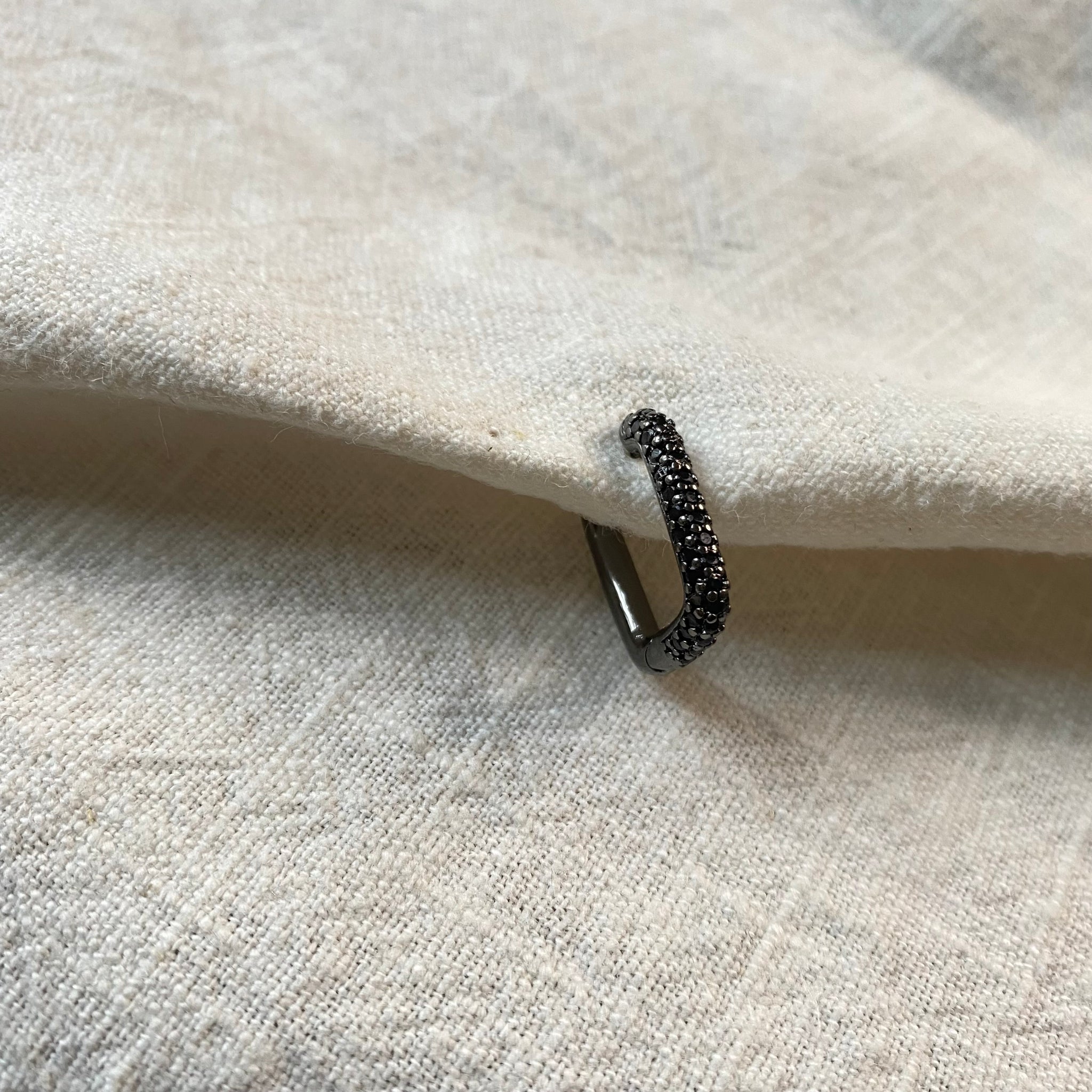 Tendance et intemporelle, cette boucle d'oreille minimaliste sertie de pierres noires ajoutera une touche unique à votre style.